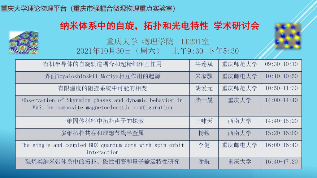 纳米体系中的自旋,拓扑和光电特性学术研讨会