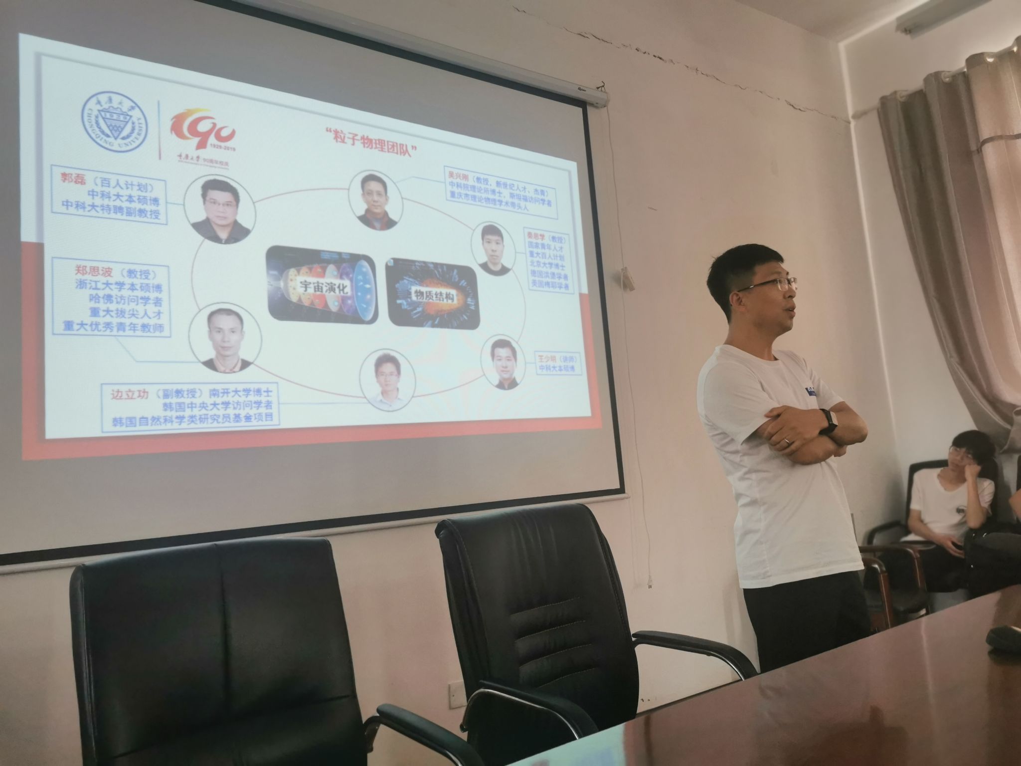 暑期夏令营等活动进行了相关介绍;秦思学教授对物理系的师资和研究情况进行了详细的介绍,并对高能物理和粒子物理研究团队进行了详细的讲述;李昕教授对中文无码