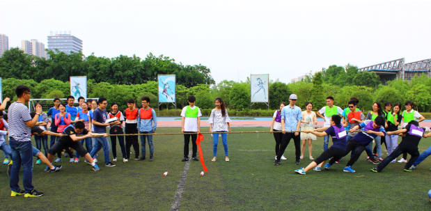 接下来进行拔河比赛,每个人都十分卖力,紧抓着拔河绳边吼边向后拉,在这骄阳似火的夏季,队员们仍然拼尽了全力,汗水肆意地流过他们的脸颊,但他们心中只有一个念头,就是:我一定要拉过河界!一如他们奋斗的大学四年时光和他们顽强拼搏的青春岁月。