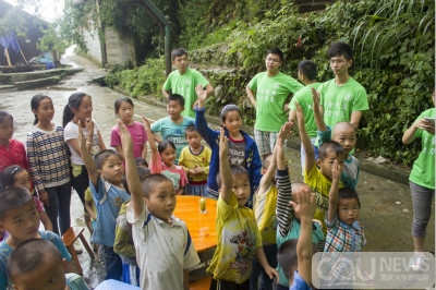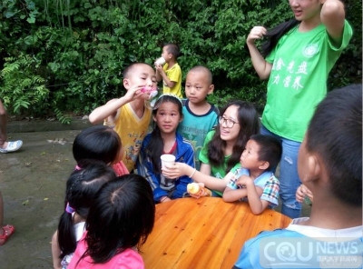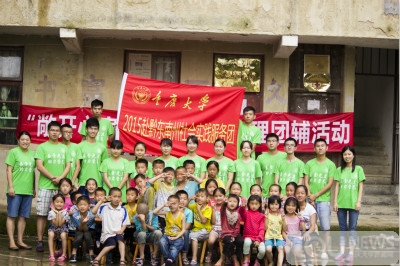2015赴贵州黔东南社会实践志愿服务团在院党委副书记萧倩和院团委书记张珮璐的带领下,一行18人来到国家级贫困县台江,开展了以“乐食光盘,助力营养”为主题的社会实践活动,对该县方召乡向阳村留守儿童开展了爱心捐赠、科普实验、心理团辅等活动,并深入当地进行了有关留守儿童营养状况、心理健康及教育现状的调研。