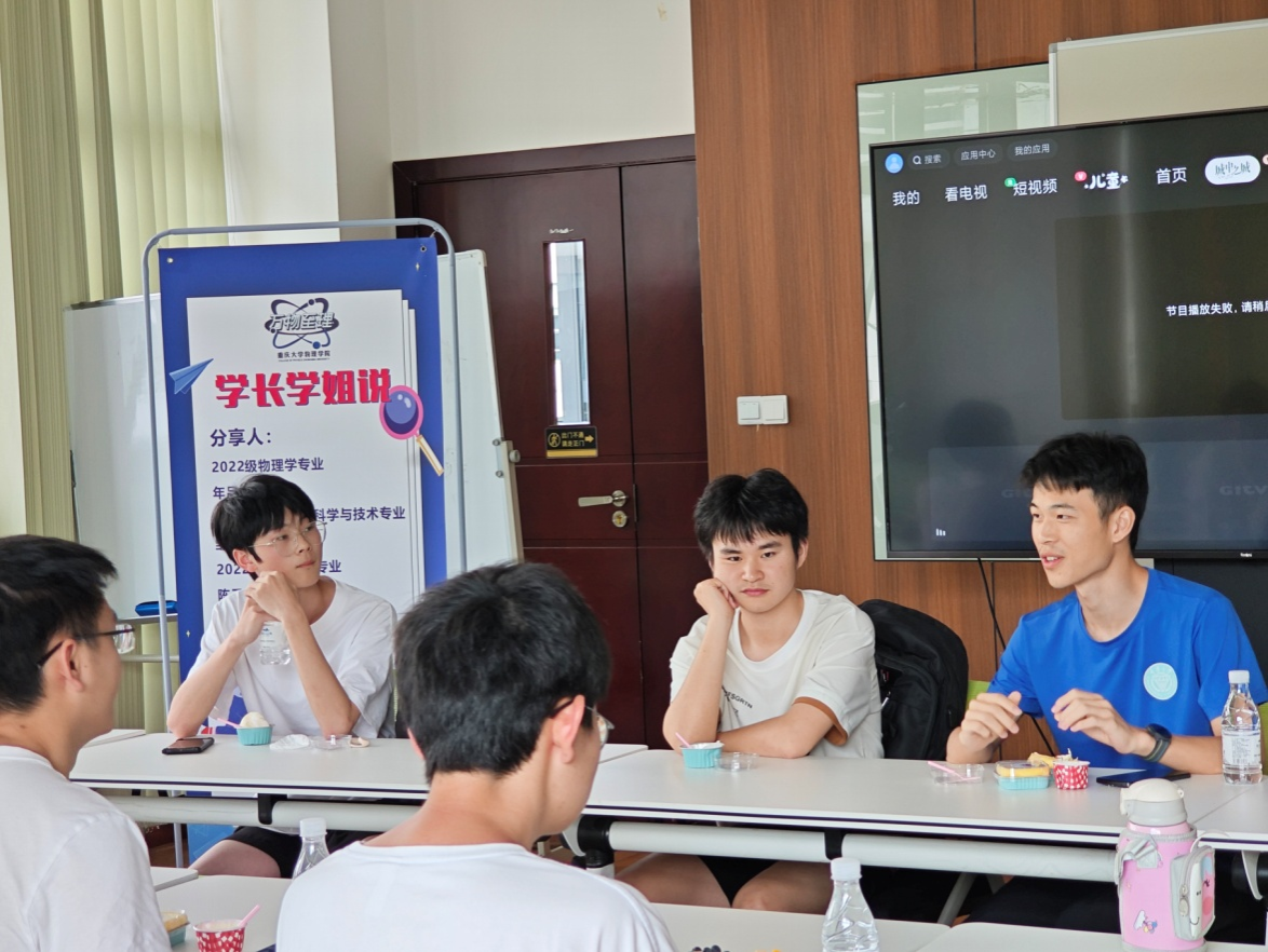 举办了“万物至理”系列活动之学长学姐说。本次活动邀请了2022级电子信息科学与技术专业的邹黎、2022级物理学专业的年吕龙以及2022级应用物理学专业的陈云翔三位优秀学生,为学弟学妹们解答疑问。活动旨在拉近同学们之间的距离,缓解学习压力。
