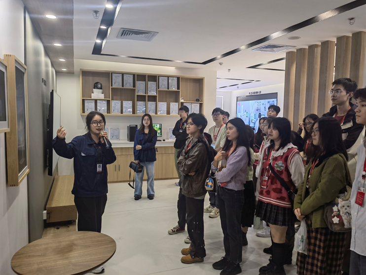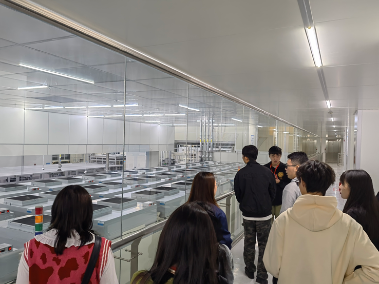 同学们先后参观了企业展厅、生产通道。讲解员生动详尽地解说,不仅让大家对惠科的发展历程和技术创新成果有了直观而深入地认识,更激发了他们对科技创新的无限热爱与向往。踏入生产一线,同学们亲身体验了半导体显示产品的诞生过程,他们被这种高度自动化、智能化的生产方式深深吸引,纷纷驻足观看。