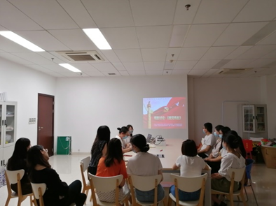 研究生第一党支部宣传委员肖仕娟以ppt的形式带领支部成员进行党史回顾并重温入党誓词。