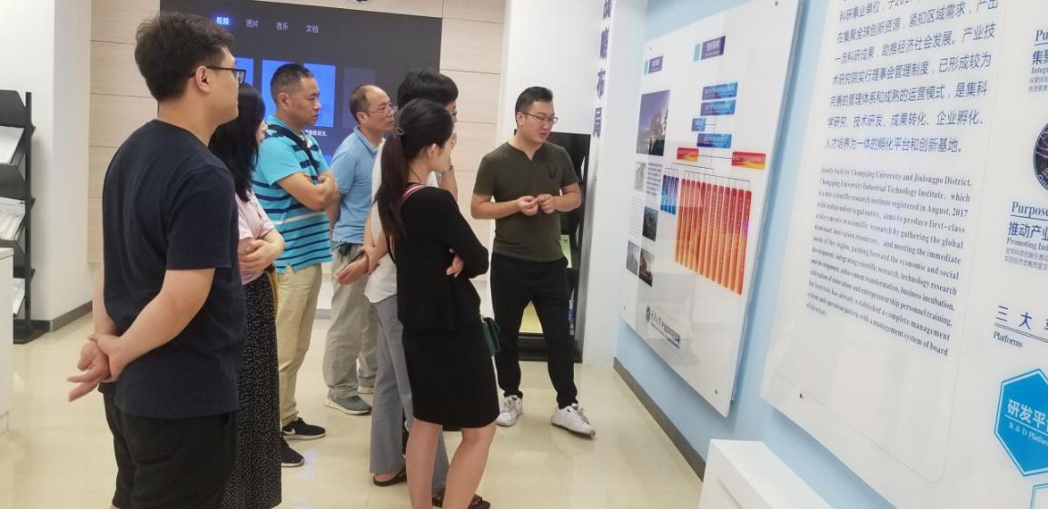 产业技术研究院工作人员带领参观学习高校科技孵化及技术成果转化。中文无码