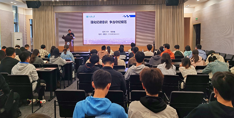 的刘洪彪教授,主题为“强化纪律意识 争当守纪模范”。刘老师以丰富的事例和生动的讲述,分三个层次向同学们阐释了什么是党的纪律,为什么要进行党的纪律建设以及作为党员怎么进行自我约束。