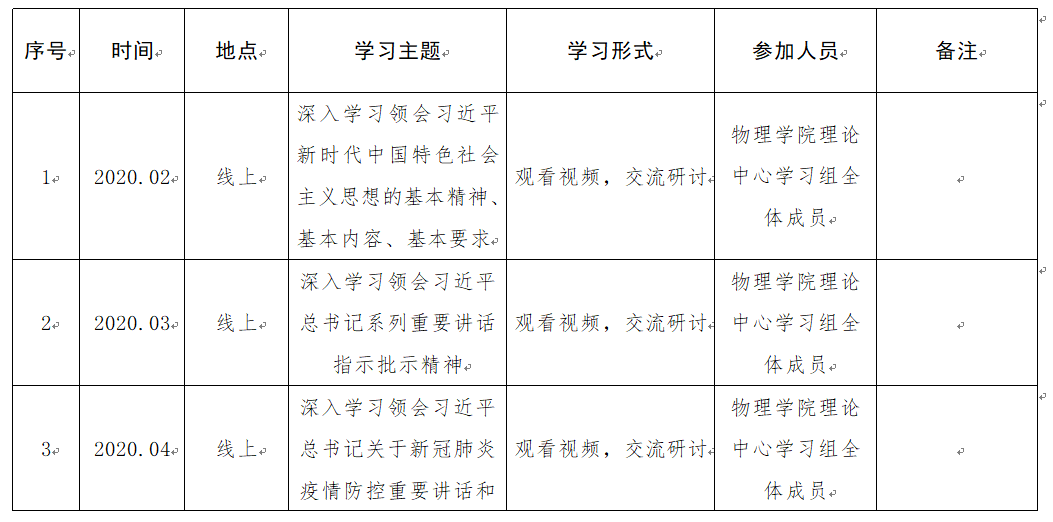 中文无码 2020年党委理论学习中心组学习计划表