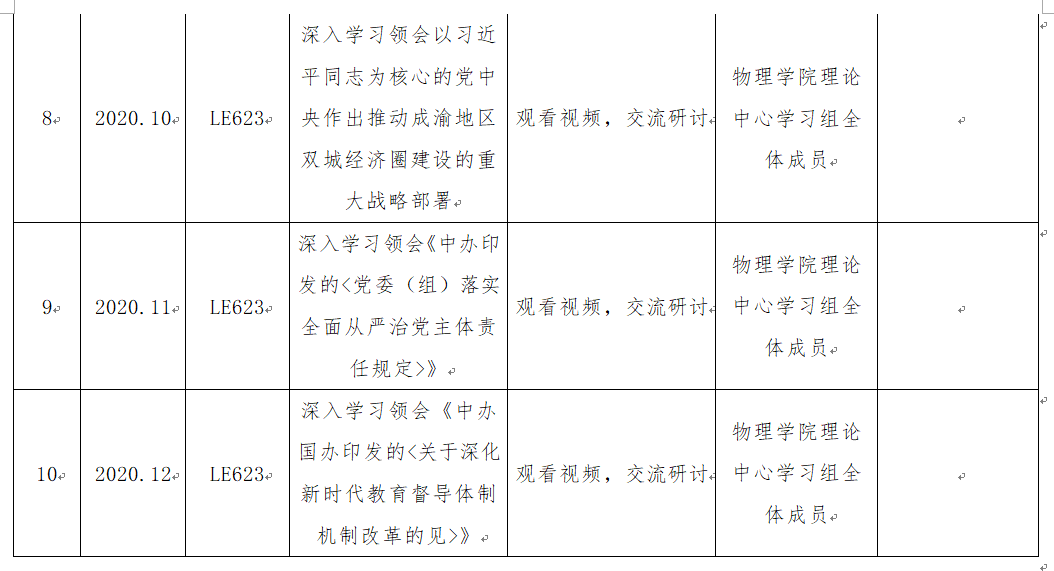 中文无码 2020年下半年党委理论学习中心组学习计划表(补充)