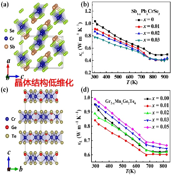 图三:极低热导率热电材料:Sb1-xPbxCrSe3和Cr2-xPbxGe2Te6。