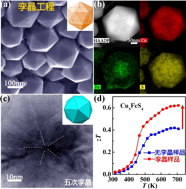 图四:Cu5FeS4二十面体基于孪晶工程实现热电性能协同调控