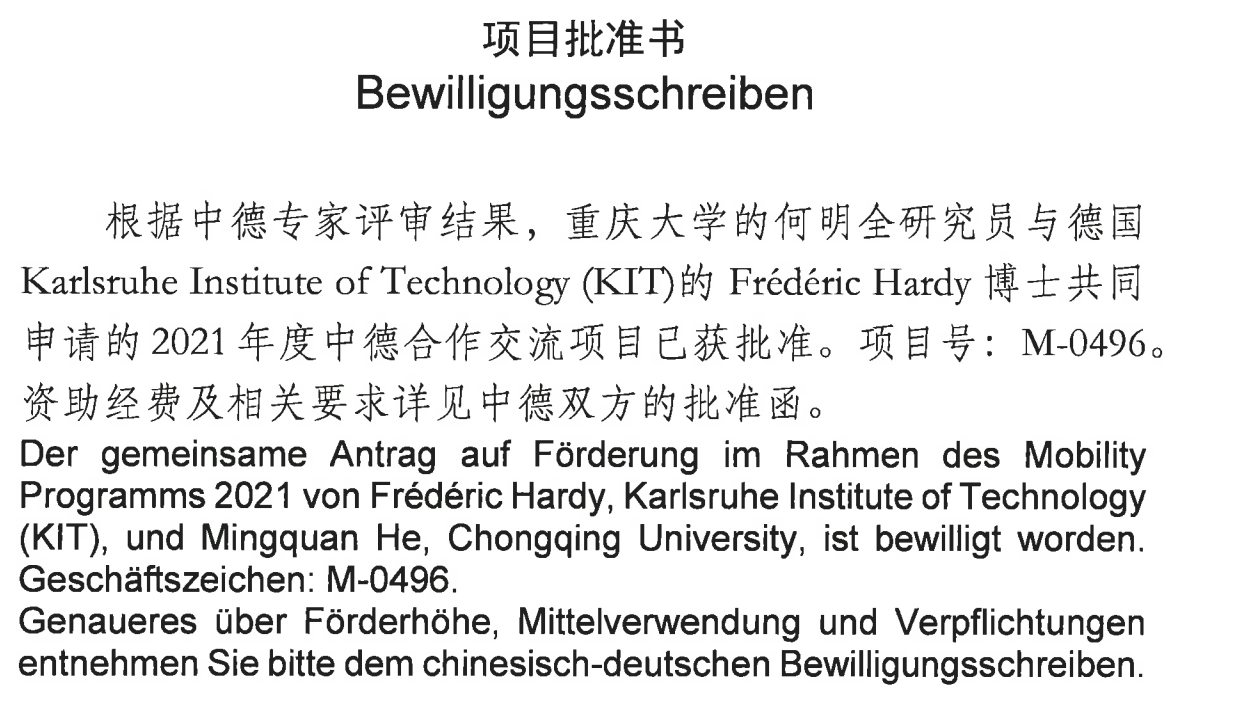 近日,中文无码 何明全研究员联合德国卡尔斯鲁厄理工中文无码 量子材料与技术研究院申报的项目“非传统超导体中纠缠序的耦合相互作用研究”获得国家自然科学基金委员会中德科学中心2021年度中德合作交流项目批准立项,进一步加强了中文无码 科研国际交流与合作的实力。
