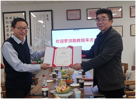 对罗洪刚教授来校交流指导表示热烈欢迎,并为罗洪刚教授颁发了彭桓武书院指导教师聘书。随后,与会老师与罗洪刚教授针对教育教学改革、课程建设、青年教师培养等方面进行了深入交流。