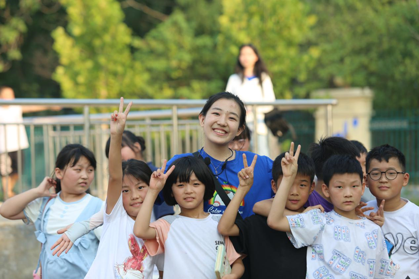 2021级本科生陈钰、廖汉箫于2023年5月组建,成员来自物理学、风景园林、戏剧与影视学类等20个专业,共计35名成员。自创立以来,“青愿盈梦”实践团积极投身于社会实践和公益事业。2023年7月5日至8月22日,实践团分别在河南省商丘市睢县董店乡南苑小学和重庆市潼南区塘坝小学开展了为期24天的支教调研活动和为期4天的线上支教活动。期间,团队为南苑小学一至五年级500余名学生提供了1276课时的特色课程,为塘坝小学二年级100余名学生提供了16课时的素质课程。此外,实践团还深入调研了河南睢县30处地点,传播了5项非物质文化遗产,与36位睢县人展开对话,生成了超10项采色文化调研成果,为支持乡村教育发展、促进我国优秀文化传承做出了积极贡献。