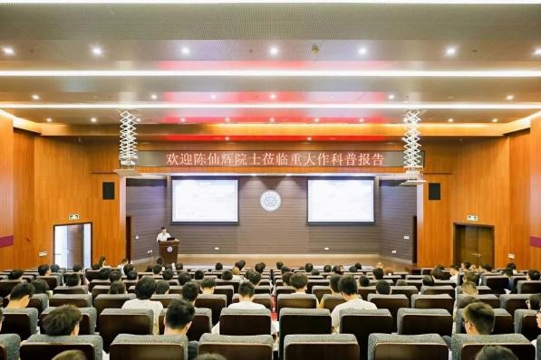 在科普大咖说活动中,陈仙辉院士《神奇的超导及其应用》尽显超导神奇魅力。陈院士的讲座从物理学的三大支柱:经典物理学、相对论、量子物理学引入,阐述了物理学发展的两个维度及物理学的核心问题等,从宏观角度让同学们初步了解物理学的魅力。他重点讲述了超导的基本特征、超导的应用、超导研究的展望三方面,为了让同学们理解超导材料,陈院士给同学们观看了华君武的漫画、超导实验视频等,化繁为简地让同学们认识神奇的超导世界,了解超导研究的发展历程、未来前景与面对的挑战。讲座中,陈仙辉院士叮嘱同学们:做任何事,不要忽略细节;不要迷信权威;有效的执着可以带来成功;要具备自主思考的勇气和能力。这次与科学家面对面,让在场的同学们深切感受到科学家对科学的热爱、执着与坚守,更为他们在科学道路上的钻研精神所感染。