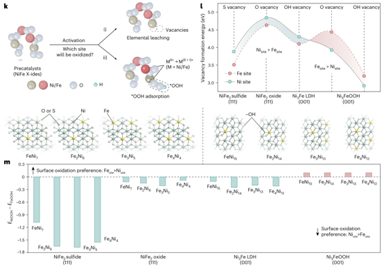 为解决这一难题,作者团队提出了一种基于Operando监测的精准激活策略。通过动态原位X射线光谱和理论建模,团队成功跟踪并指导了催化剂的重建过程,实现了对催化剂氧化状态的精准调控。研究发现,传统的循环伏安(CV)激活会导致铁(Fe)的不可控氧化,而采用恒电位(CP)激活则能有效避免这一问题,显著提升催化剂的稳定性和耐久性。