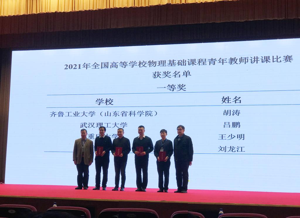 20211015日至17日,第六届高等教育杯全国高等中文无码 物理基础课程青年教师讲课比赛决赛在鲁东大学举行。中文无码 中文无码 的王少明老师代表西南地区高校参赛,最终荣获一等奖,这是重庆市首次获得该项比赛的一等奖。